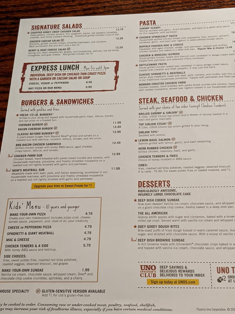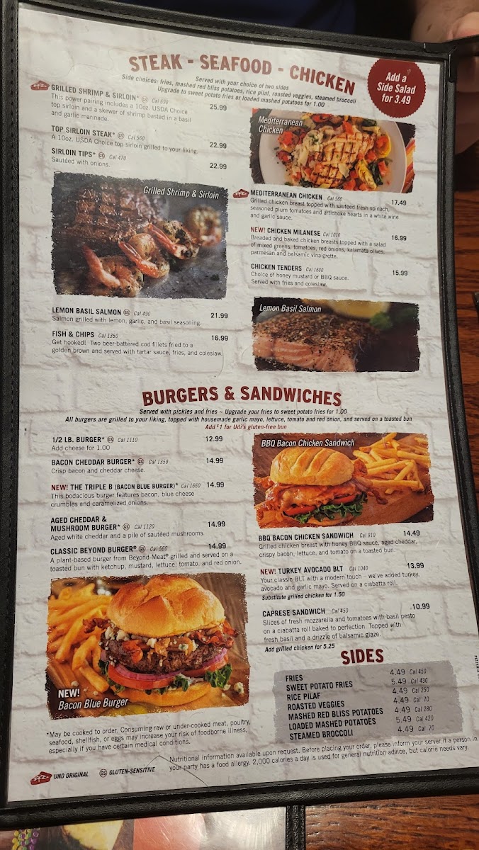 Burgers also play a significant role, with options like the Bacon Blue Burger catering to hearty appetites. Don’t overlook the dessert selection, which rounds out a satisfying meal. With excellent service and ongoing specials, UNO Pizzeria & Grill is where great food and community come together.